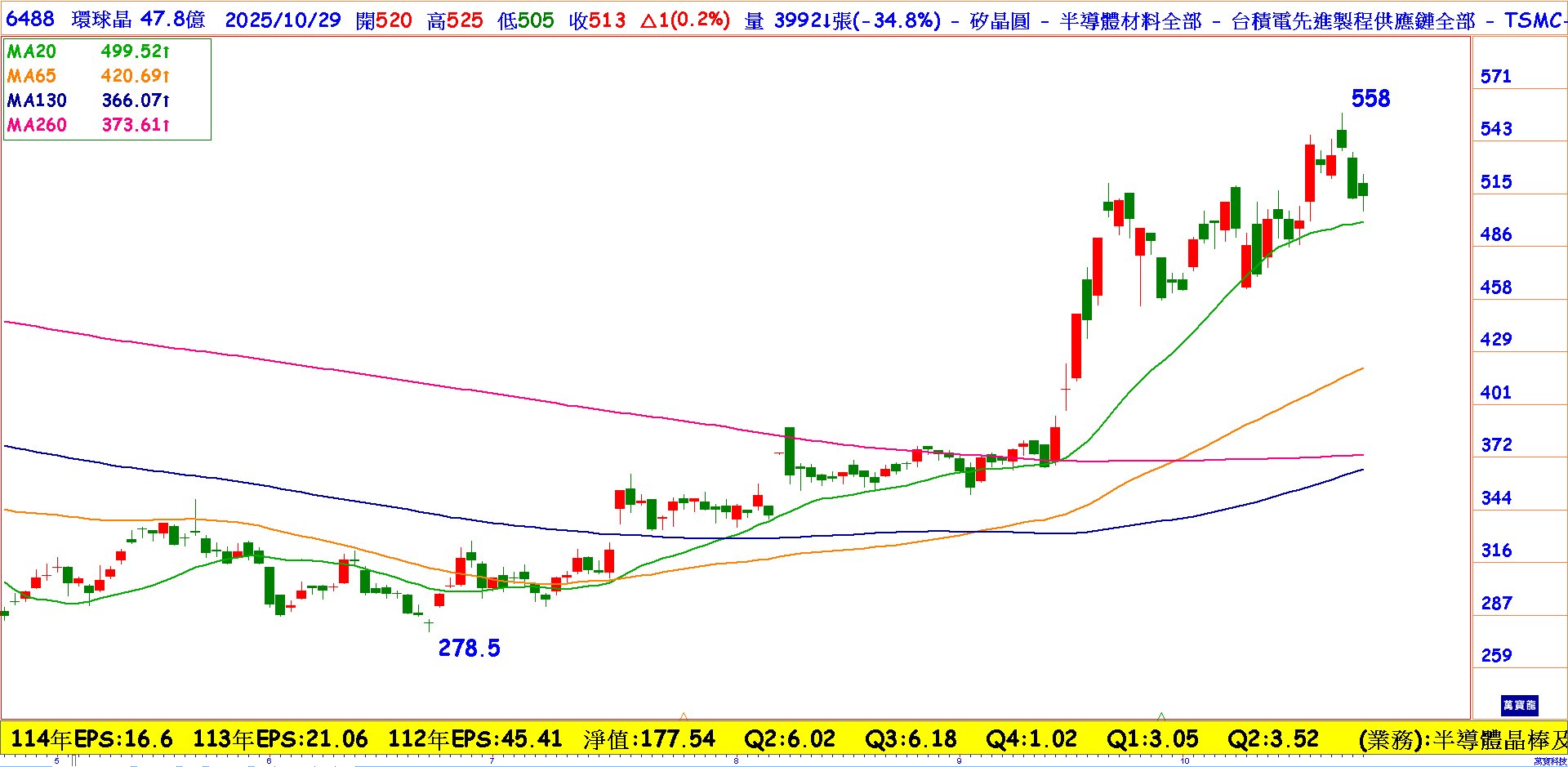 環球晶的多頭行情三支箭,其一,記憶體循環觸底回升,今年Q3起 DRAM、NAND報價續彈,供給面已現緊俏跡象,公司記憶體營收占比三至四成,價格反轉將同步帶動出貨與合約價,營運回暖;其二,美國擴產進入放量期。環球晶為近年少數在美擴充 300mm 矽晶圓的供應商,德州、密蘇里新廠預計於 2025年下半年、2026 年上半年陸續投產,受惠在地化政策與先進製程拉貨,營收結構可望在上一層樓;其三,特用晶圓毛利提升、GaN產能利用率滿載,儘管SiC短期仍有價格壓力,但隨8吋產品於2026年導入、整體毛利率上看 30%,投資朋友不妨留意。