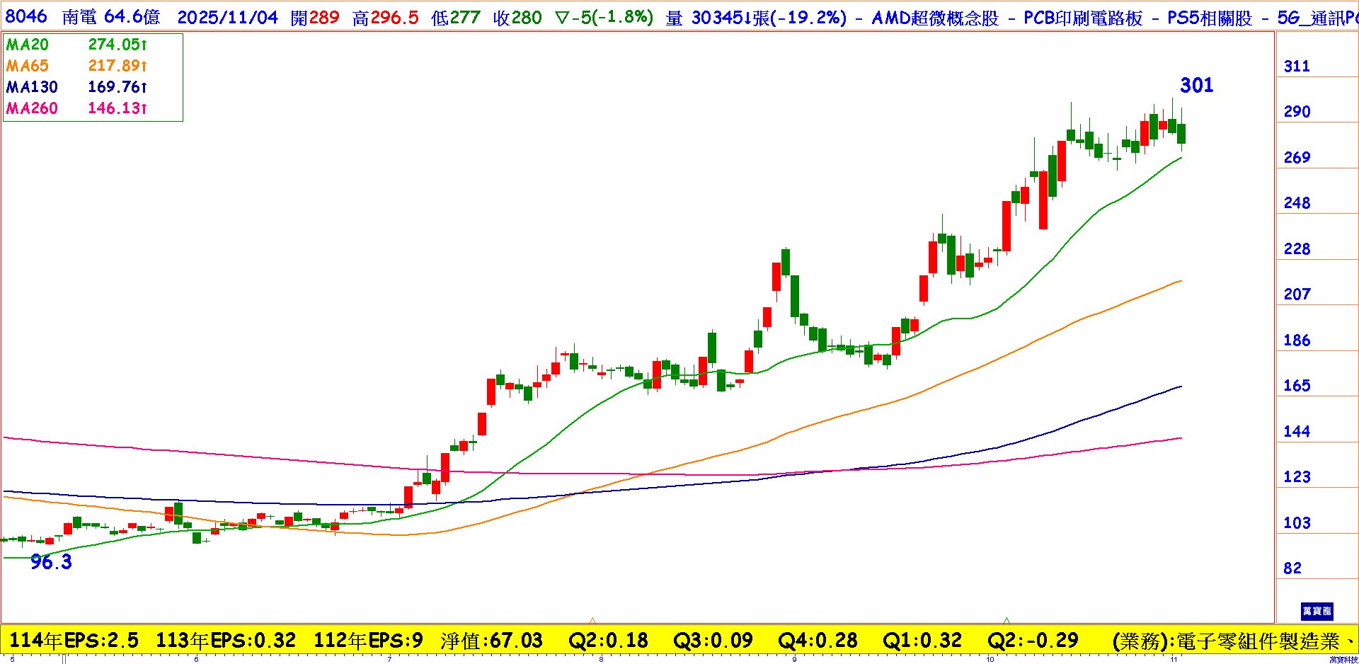並且南電也是台塑集團旗下高階印刷電路板及IC載板製造廠,近期季底集團作帳態勢明確,包含南亞科(2408)、南亞(1303)、台勝科(3532)也都接連大漲,南電受惠AI、5G、800G等新興應用,9月營收35.39億,雖較8月下滑7.04%,不過較去年同期成長19.22%;第三季營收109.67億,季增14.45%、年增19.32%;累計今年前9月營收290.08億,年增18.82%。ABF與BT載板需求持續增溫,南電明年有機會在更多高階AI伺服器專案中扮演關鍵角色,加上T-Glass新產能陸續釋出,投資朋友不妨留意。