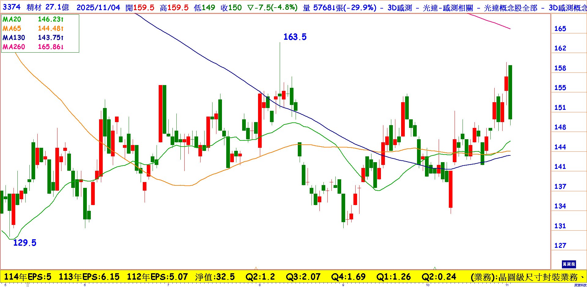 雖然新廠建置將帶來短期折舊與開辦費用的壓力,影響2025年上半年獲利表現,但這屬於「短痛長多」的結構。法人預估2025年全年EPS可達6.14元,並給出目標價180元。精材正在完成從單一測試代工廠 → AI與3D感測整合供應商的轉型。若新測試業務量產順利,毛利率回升空間仍大。有機會價值重估股價上看180元以上並非難事。