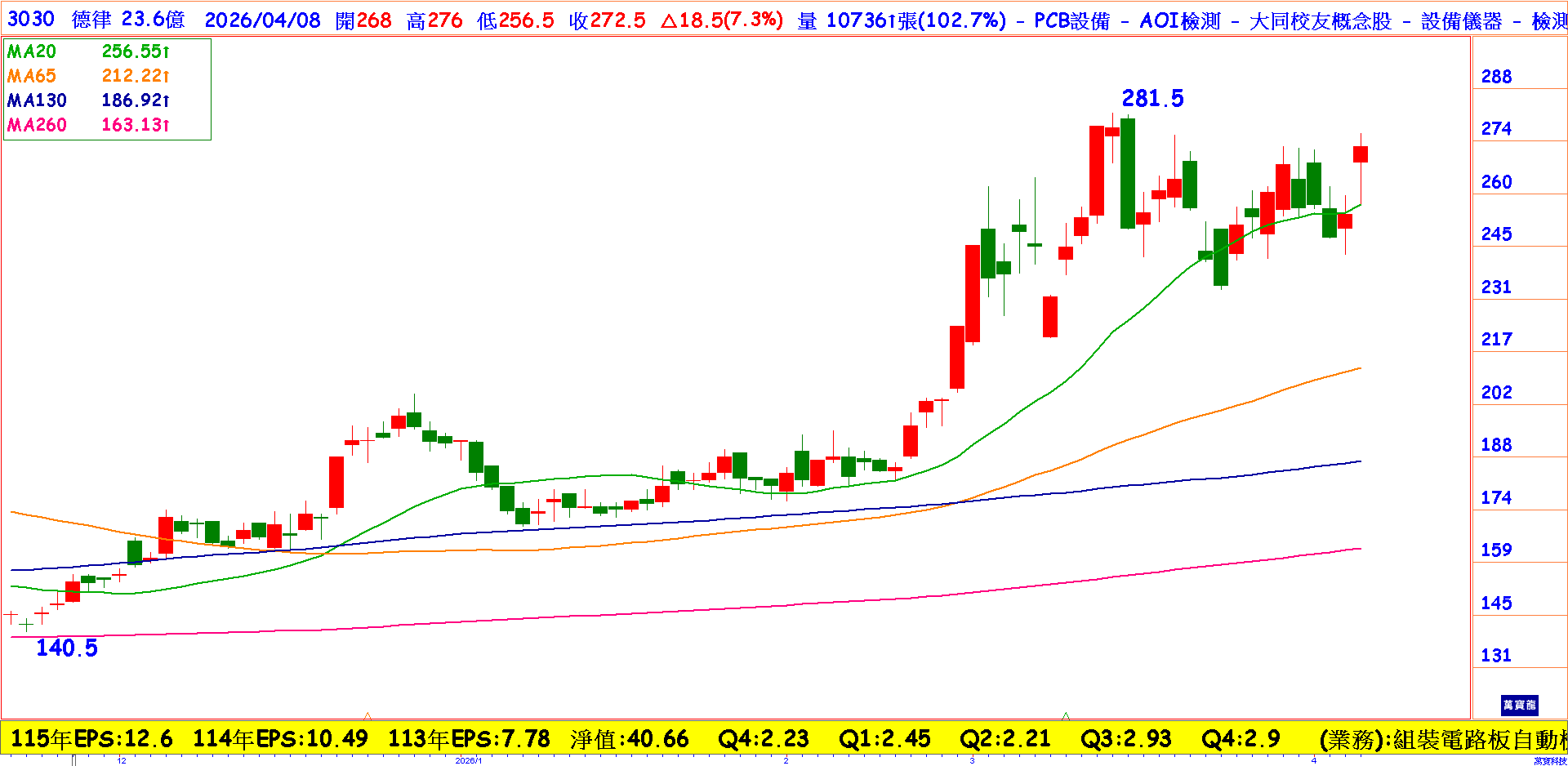 國內老牌設備大廠:德律科技(3030),近期繳出的成績單,引起法人圈的震撼!三月營收7.93億元,年增14.72%,第一季累計營收達24.41億元,不只看起來亮眼,更創下歷年同期新高,較去年同期大幅成長25.8%,比去年第四季也強勢成長17%。今年前兩個月稅後EPS已達2.23元,首季獲利可期。