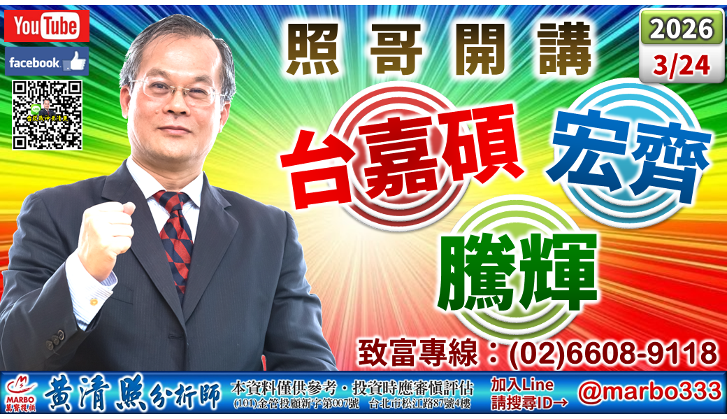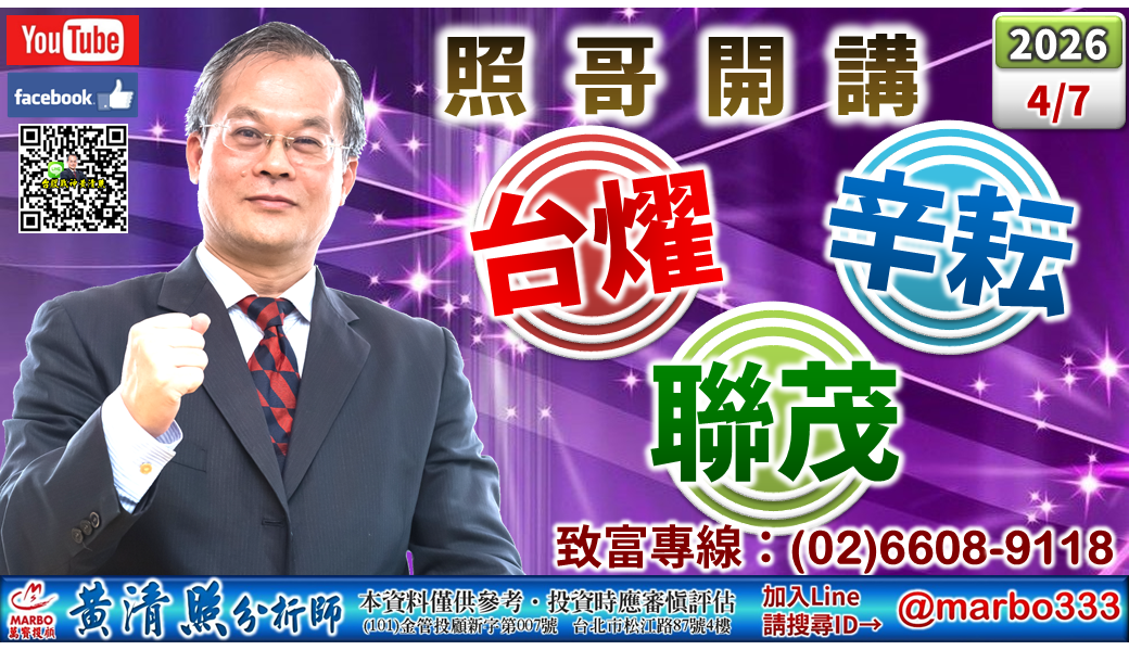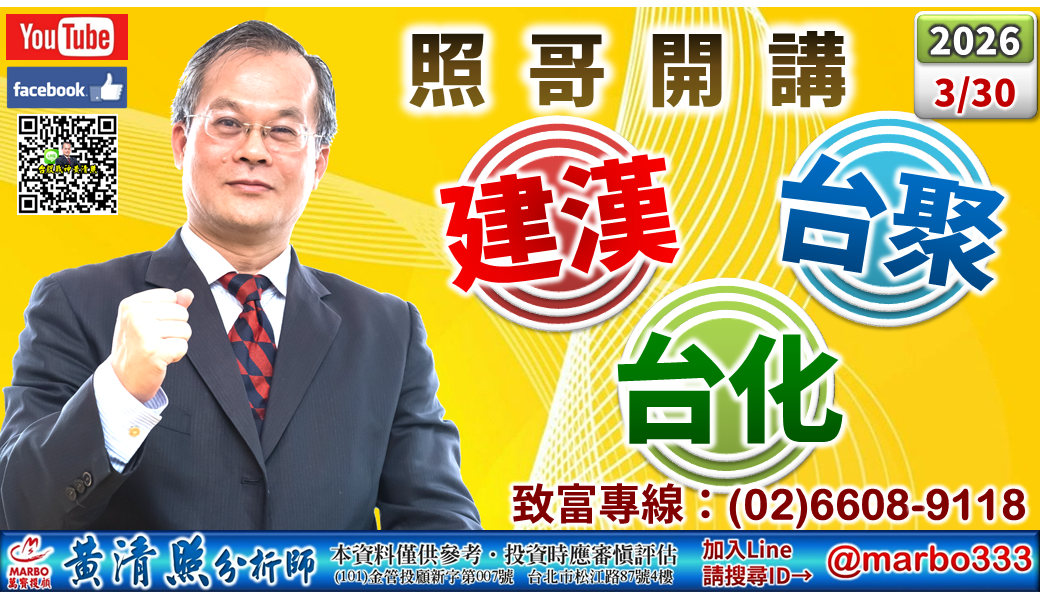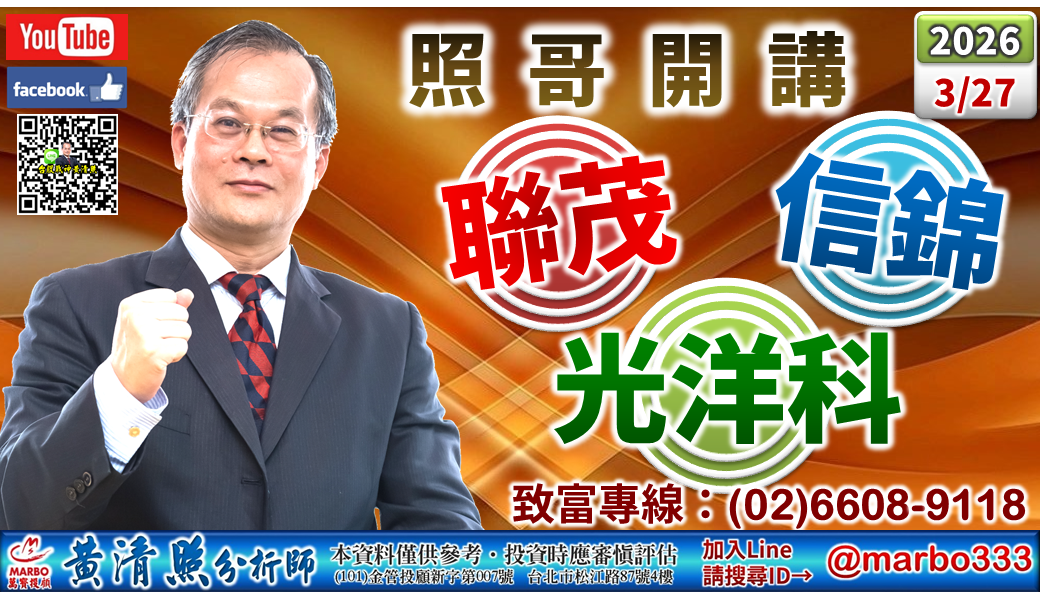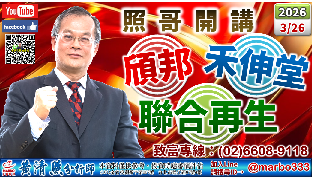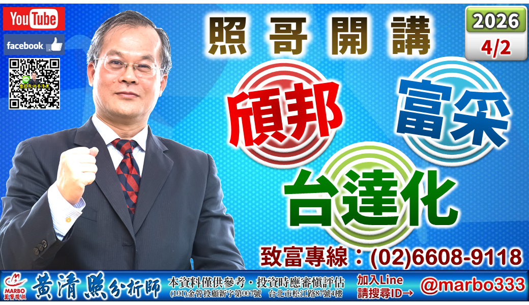 萬寶投顧 黃清照副總經理 三十年以上國內外券商法人操盤經驗 自我介紹: 精準的操盤功力,解碼主力動向,分析總體經濟及產業的趨勢,揭露股市天機。 戒掉窮腦袋,才有富口袋,富不起來是用錯方法。 黃清照老師將為你拿下別人望塵莫及的勝利,改變自己吧!歡迎加入團隊! 連線時間: 週一~週五11:00~11:20 非凡商業台週一~週五11:25~11:50 非凡新聞台週一二三五 17:00 開播 萬寶電視台